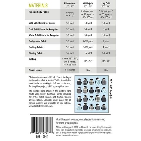 Penguin Party - Printed Quilt Pattern By Elizabeth Hartman